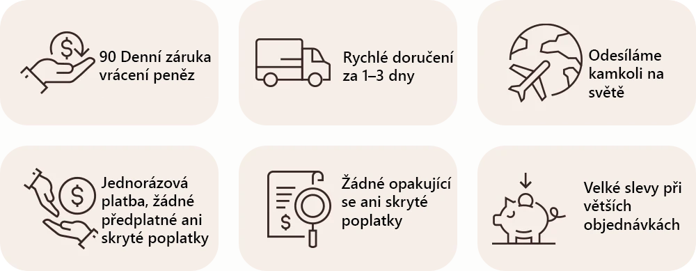 Doba doručení je 1-3 pracovní dny. Doprava je zdarma pro objednávky nad 40 € a 5,00 € pro objednávky pod tuto částku.