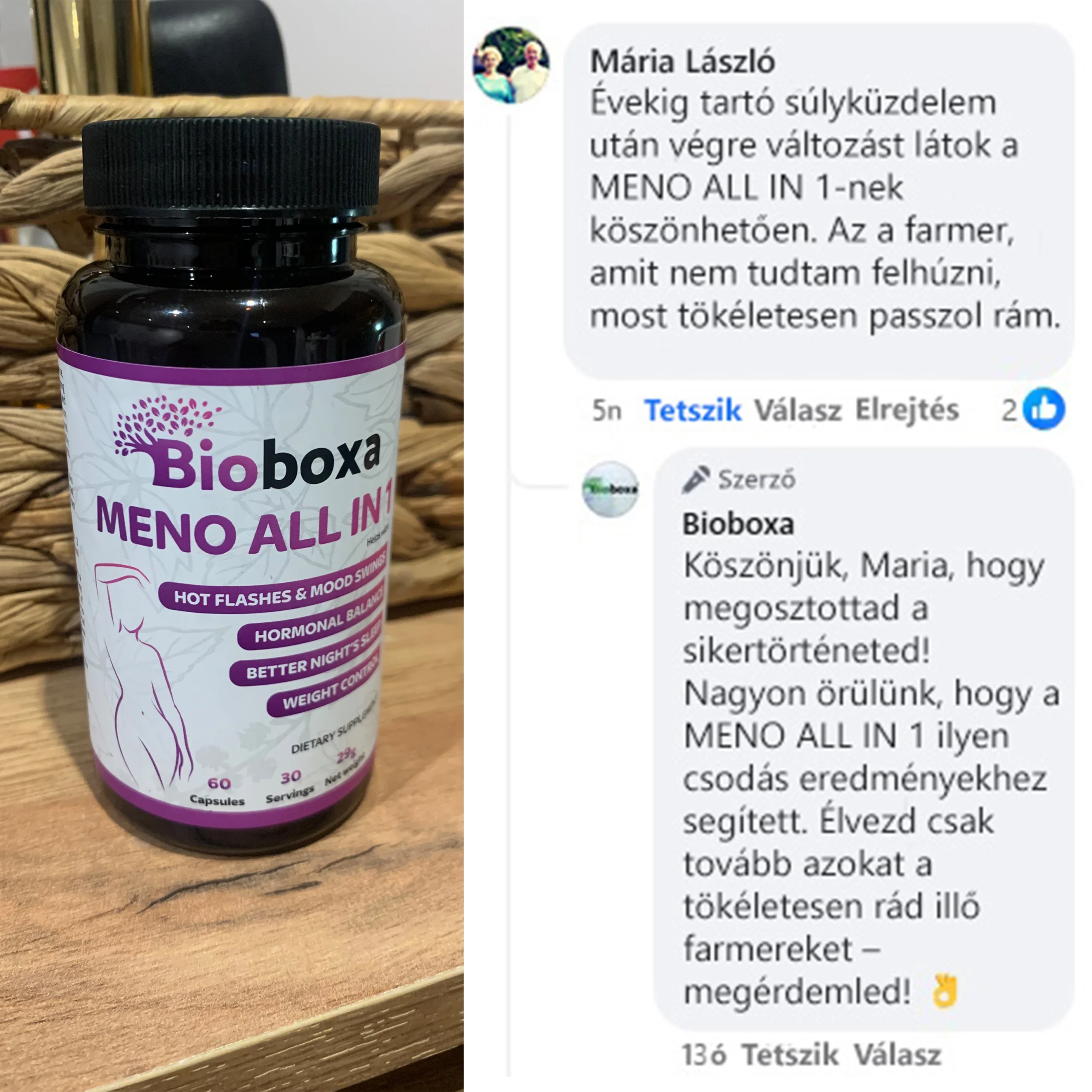 „Hónapokig vállfájdalommal küzdöttem. Amióta szedem a Meno ALL IN 1-et, a fájdalmam 85-90%-kal csökkent! Óriási megkönnyebbülés!”